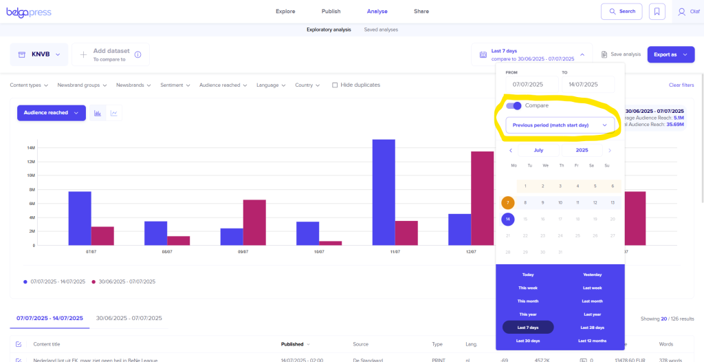 A brand-new feature in Belga.press is the ability to easily compare datasets.