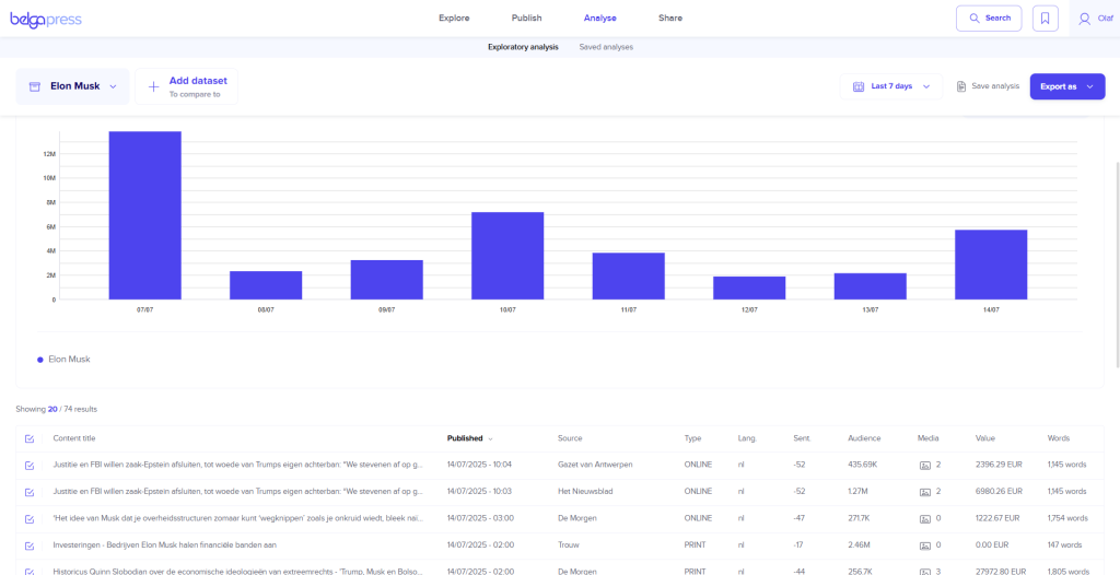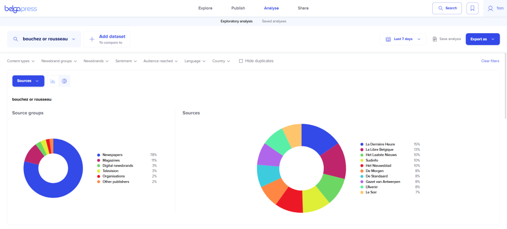 As the name suggests… Belga.press offers you a wide range of media analysis options.