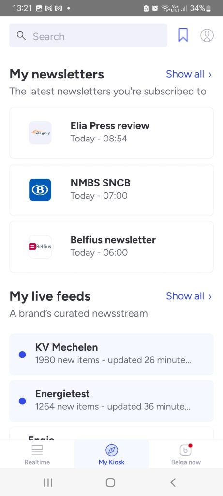 Zo kan je eenvoudig al je favoriete publicaties lezen, of de Belga agenda consulteren (NOOT: enkel mits toegang tot agenda)